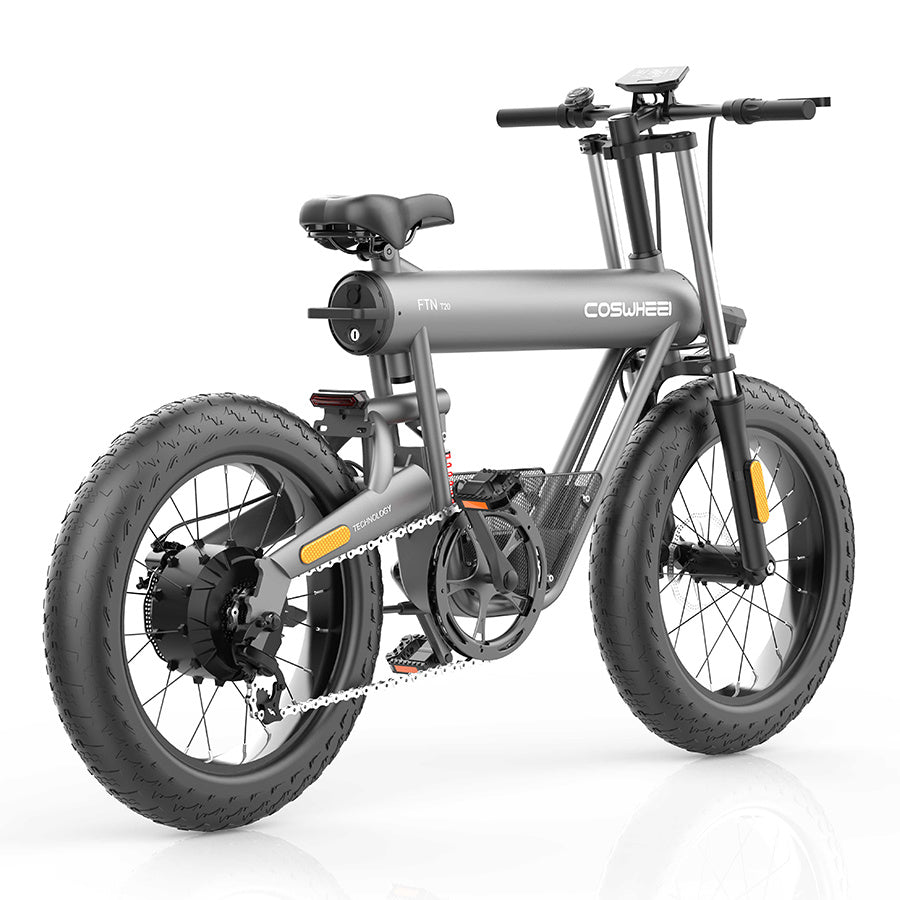 The Coswheel T20 is a foldable electric bike built for both city commuting and weekend exploration. With its durable fat tires, dual suspension, and reliable pedal-assist system, it offers a stable and comfortable ride across various surfaces.