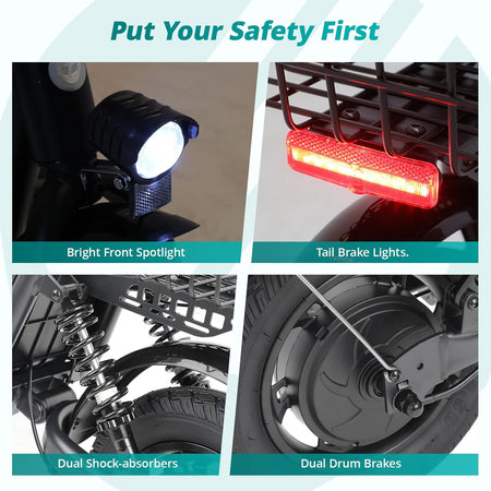 Living in NZ? The A5 is your all-rounder: a removable rear basket perfect for groceries a spacious 9.5″ deck, and a seat that keeps longer rides fatigue-free